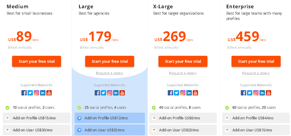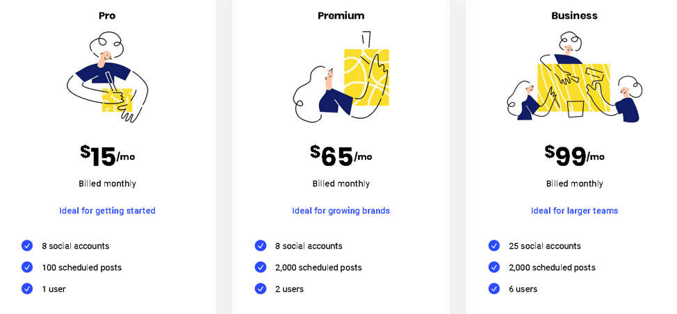 - There’s a Free Plan. One of the only social media management tools to have a free plan.