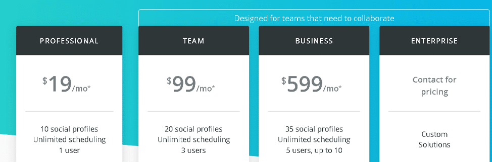 - Can easily get more expensive if you’re working within a team. Getting profiles for team member’s costs much more than other platforms.