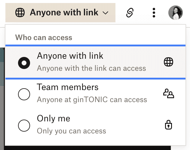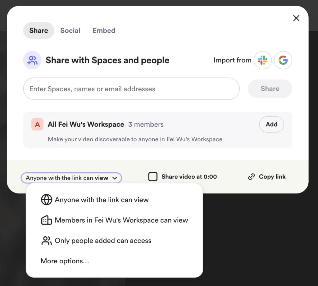 DropBox and Loom both have standard sharing features. The difference is rather the verbiage, where DropBox refers to other users on your account as “Team members”, and Loom calls them “Workspace”.