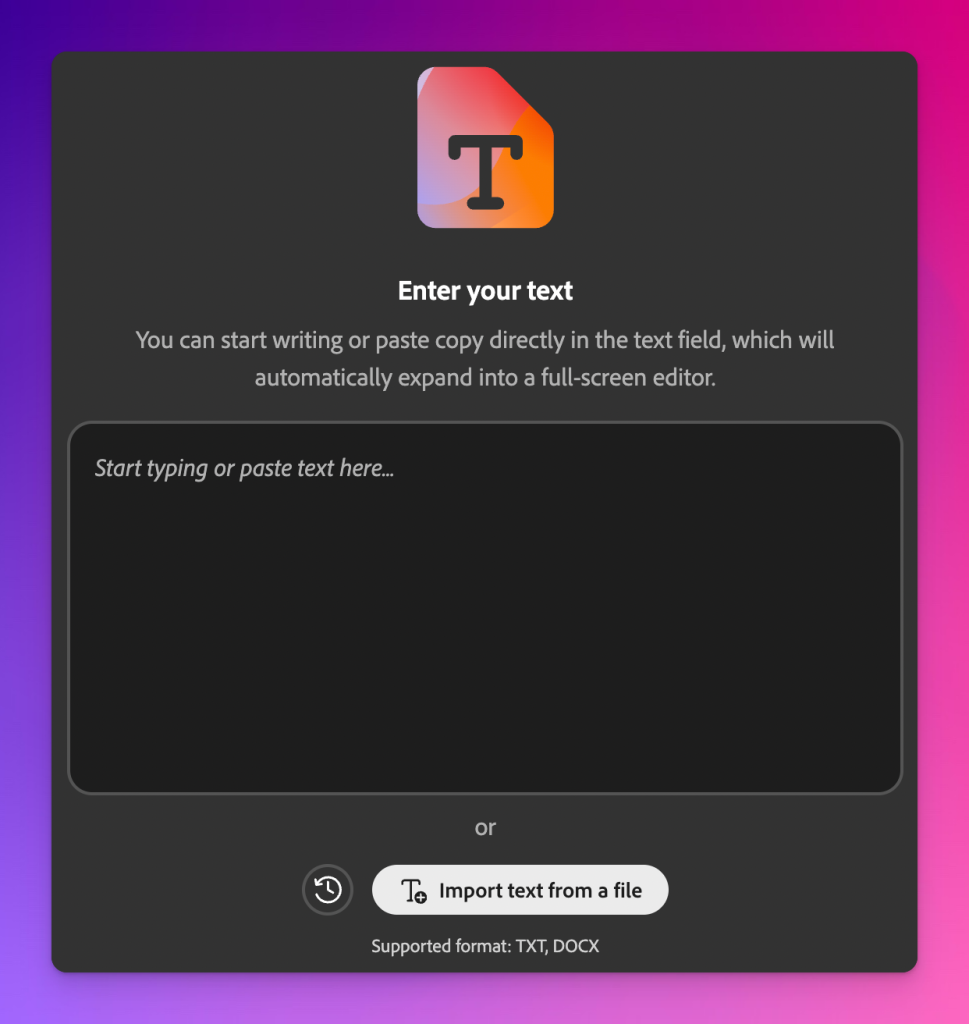 Type, paste, or import your script directly into the text box.