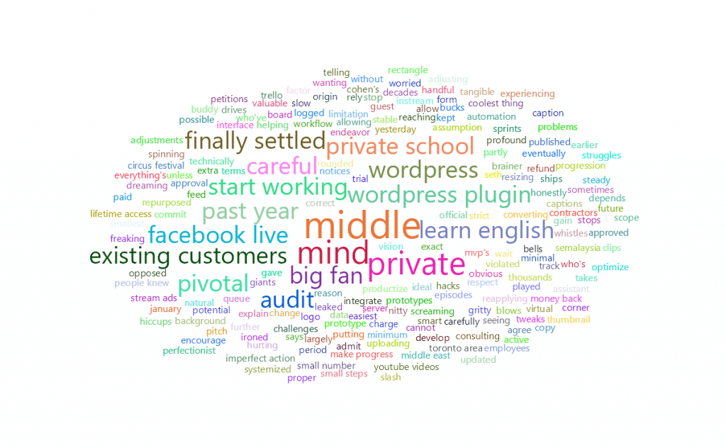 I can’t think of anything, but I mean, just kind of like in closing, I would say whatever you’re excited about now, just take imperfect action. I’ve heard this expression before, imperfect action. I didn’t know I was going to create repurpose when I launched a WordPress plugin five years ago. If I didn’t launch it, I didn’t take the risk and do it and struggle through it and figure out all that stuff. I wouldn’t have created this bigger software cause repurpose. So you don’t know what there are small steps that you’re taking now where that would lead you down the road, but you have to take action. And if it works, great. If it doesn’t work, at least you learn something that you can adjust your path. I want to summarize my experience so far in this entrepreneurial world, just take small steps and even though you don’t know the big plan yet, it’s part of a bigger puzzle.