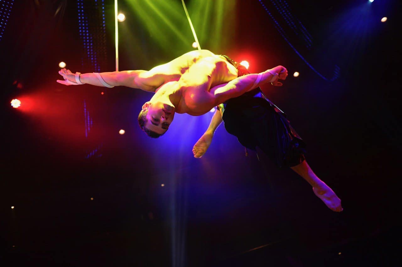 Oh, it's actually interesting because when when the show first opened, I was doing a duo straps act with a girl, so it was like a duo with a girl basically doing straps. And yeah, I was running. I had quite many queues running around on stage, but I believe they changed the concept after a year and a half. And we went it wanted solo steps and just me on stage and, and they kind of cut me from scenes, which was great because I only had like a few cues and the act and finale.